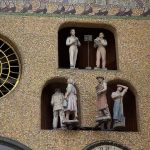 Na vrhu sata se nalaze statue dvojice vitezova koje pokazuju sate, a astronomski dio sata pokazuje mjesečeve mijene i kad i gdje će sunce zaći. Između ostalog, na satu se nalazi i kalendar.