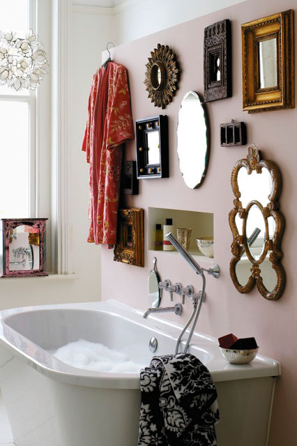 Napravite zid od ogledala i nemojte se bojati da pomiješate ogledala različitih oblika, veličina i stilova. Što više to bolje.