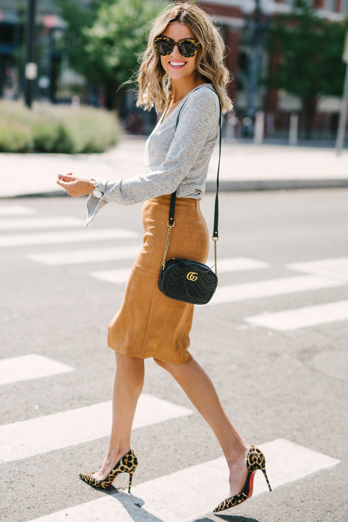 Suknja olovka kroja sa životinjskim uzorkom veoma je upečatljiva i moćna, a “primirićete” je kada joj dodate jednobojnu bluzu (najbolje onu neutralnih nijansi) i bijele štikle koje će pratiti bijela torba. Naravno, ovo je samo jedna od opcija, ali jasno vam je u kojem pravcu idemo.