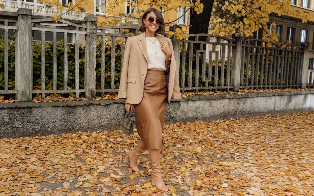 Komade garderobe od kože nosimo gotovo svake jesenje sezone, a kožna suknja samo je jedan koji vam može pomoći da dobijete veoma elegantan stajling. Naravno, ovdje je i više nego poželjno da to bude suknja olovka kroja, a koja je odlična u svim prilikama. Što se tiče boja, da biste malo osvježile stajling, umjesto klasične crne birajte kožnu suknju olovka kroja u nekoj od zemljanih nijansi.