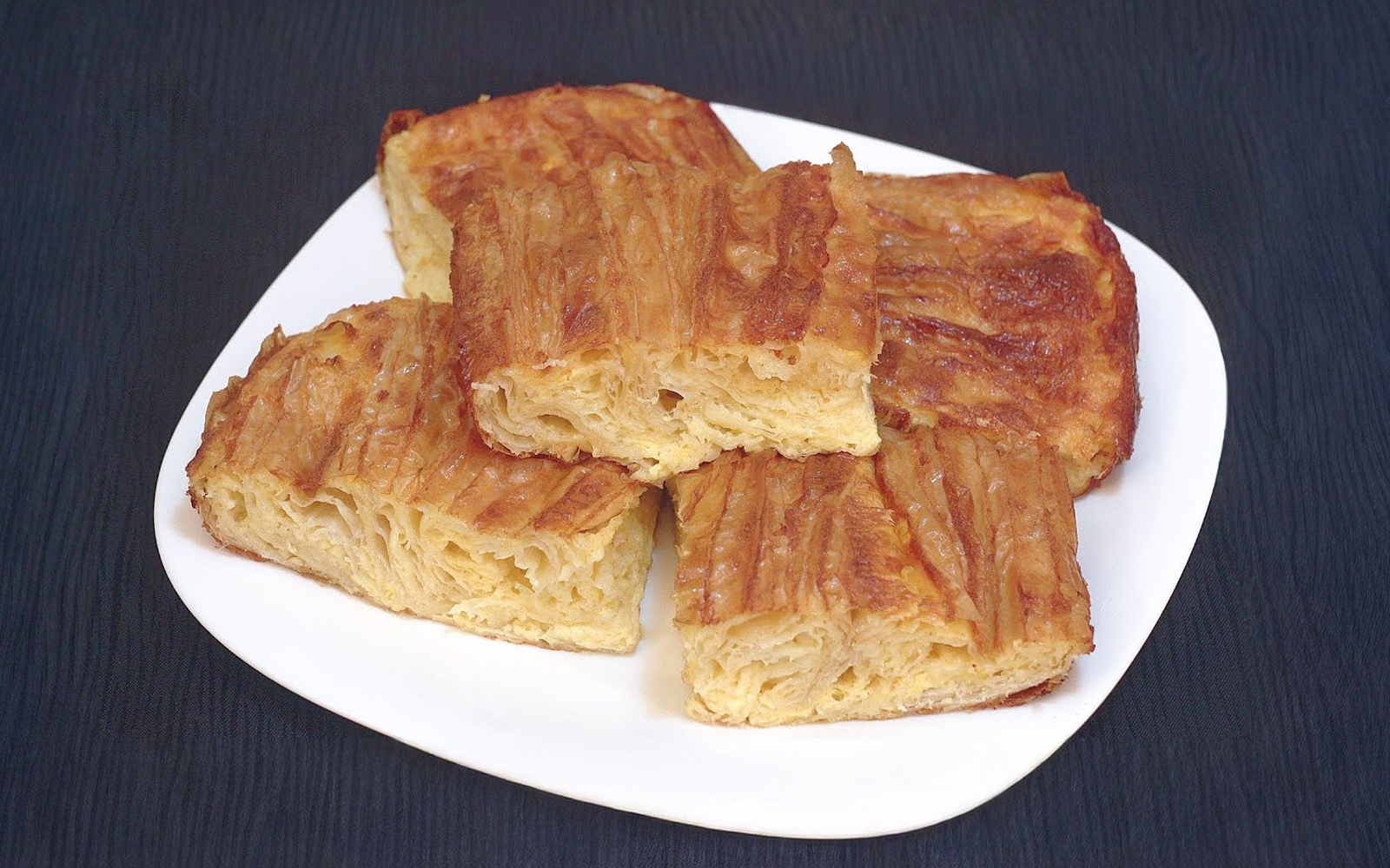 Umutiti preostalu smjesu sa jajetom pa preliti odozgo i razmazati svuda. Staviti da se peče dok ne porumeni. Poslužiti toplo. Prijatno.