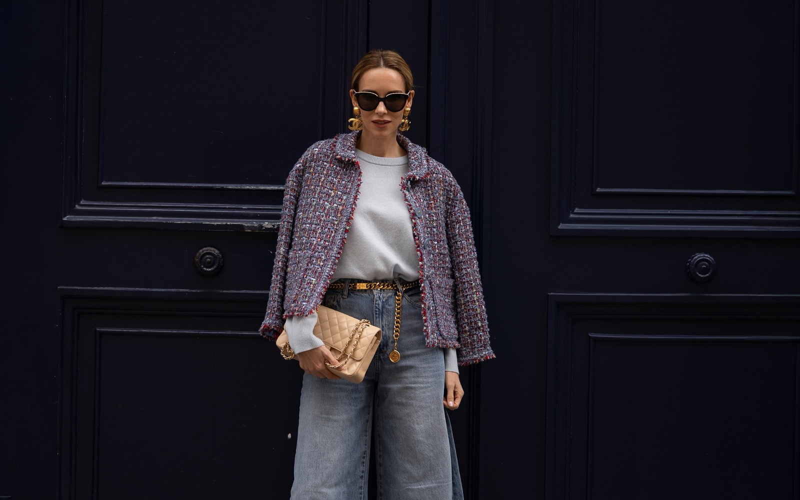 Krem, bež ili nijansa šampanjca odličan su izbor ukoliko želite da stilizujete sive farmerice. Veoma lako, veoma brzo, veoma efektno!