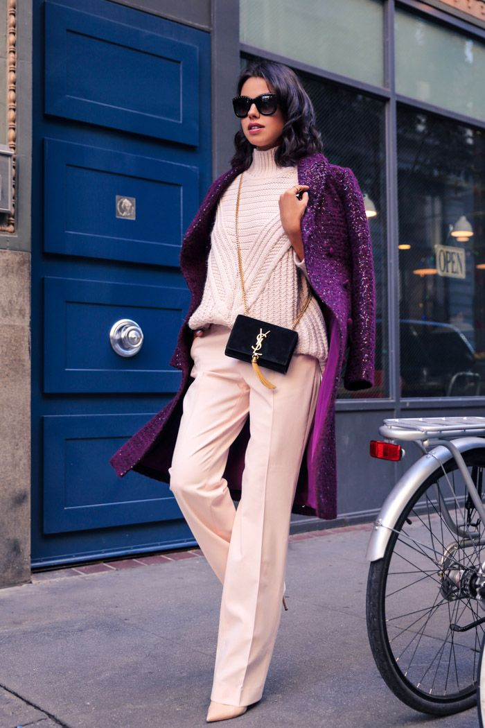 Još jedna prednost ovog kolorita je njegova prilagodljivost: lako se uklapa uz neutralne tonove poput bež, krem ili sive pa se bez problema može nositi i u poslovnim i u opuštenijim varijantama. Ljubičasta i puder ružičasta zajedno pokazuju da zimske kombinacije ne moraju biti svedene na tamne boje da bi izgledale ozbiljno i sofisticirano.