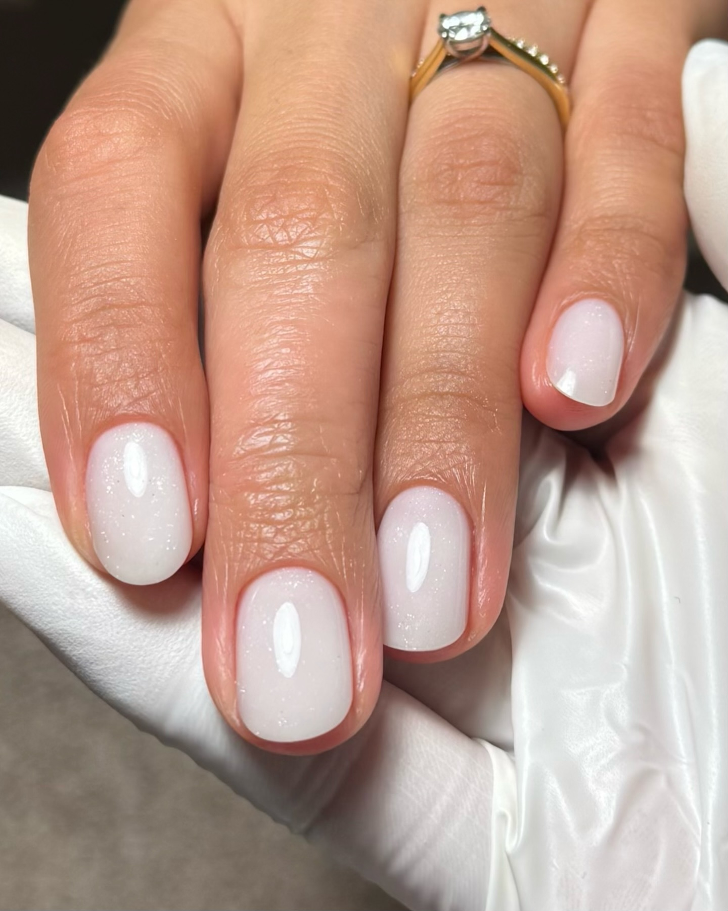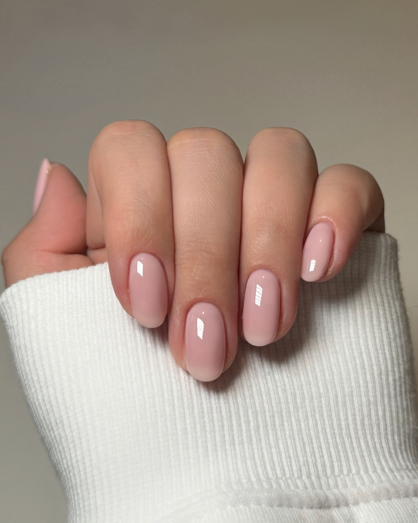 Na noktima izgleda nježno i toplo, dok sitne, jedva primjetne svjetlucave čestice stvaraju suptilan odsjaj koji se blago presijava na svjetlosti i daje manikiru mek, svečan i razigran efekat.