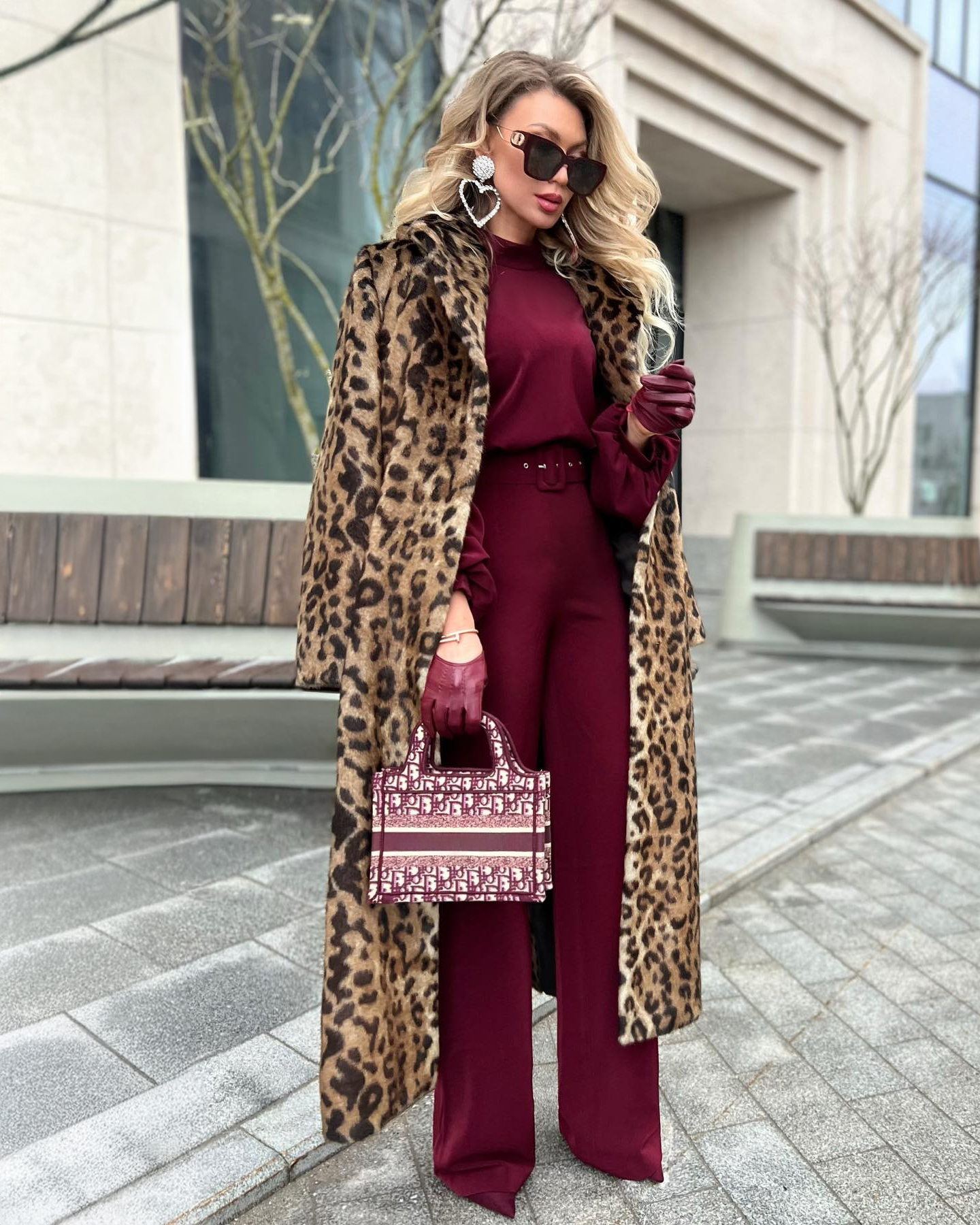 Ovdje se ne radi o kombinaciji koja želi da se dopadne svima već o stajlingu koji nosi jasnu poruku. Bordo ton dominira cijelom siluetom i ostavlja utisak snage, ali i smirenosti, one vrste elegancije koja ne traži potvrdu sa strane. Krojevi su fluidni, pokretljivi, stvaraju osjećaj lakoće dok se figura prirodno izdužuje i dobija na izražajnosti.