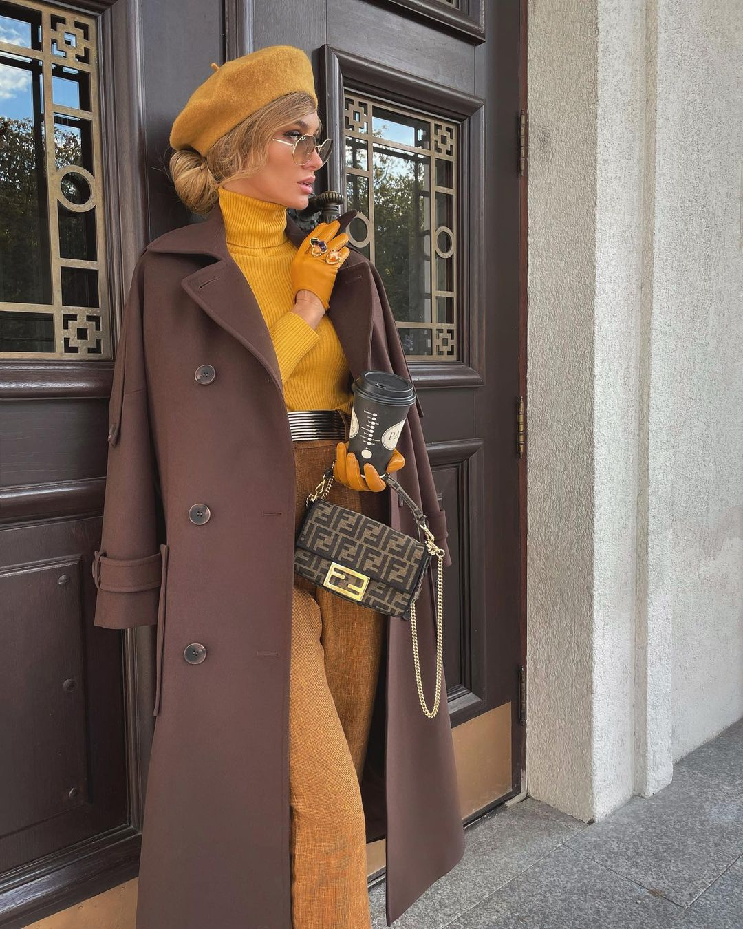 Topli, karamel tonovi ovdje se slažu u smirenu i vrlo skladnu priču, u kojoj sve djeluje povezano i promišljeno, bez viška naglašavanja. Duga linija kaputa prati pokret i daje osjećaj lakoće, dok slojevi ispod ostaju mekani i nenametljivi, stvarajući balans između strukture i opuštenosti.