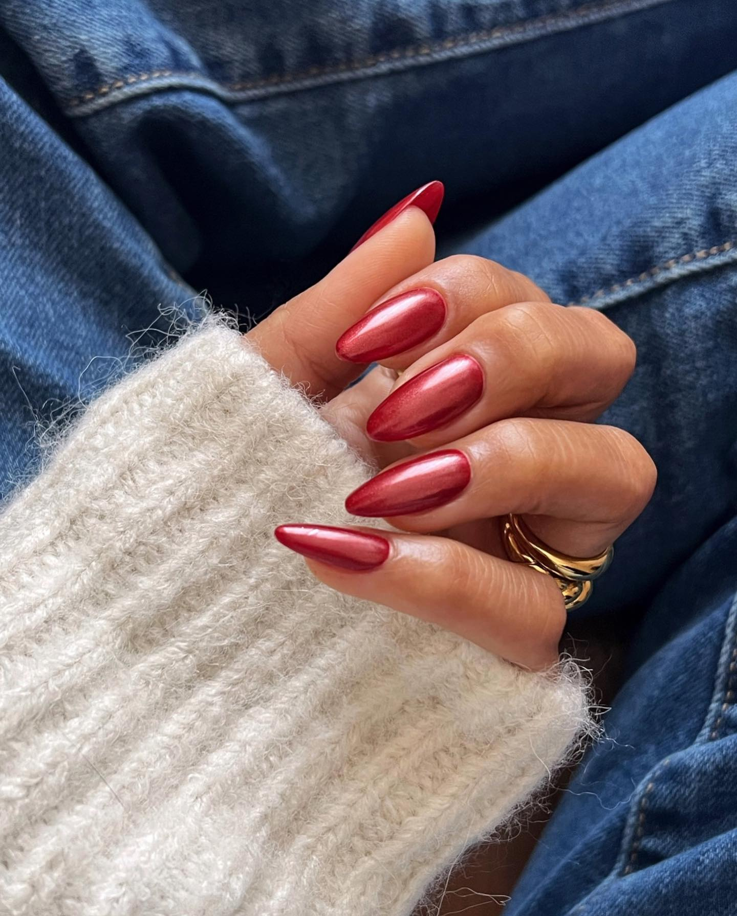 Tokom praznične sezone ova nijansa je bila gotovo svuda, a februar joj daje novi zamah, posebno u danima kada se crvena prirodno vraća u fokus. Umjesto klasičnog izgleda, ovdje je akcenat na metalnom, reflektivnom efektu koji boji daje dubinu i dinamiku.