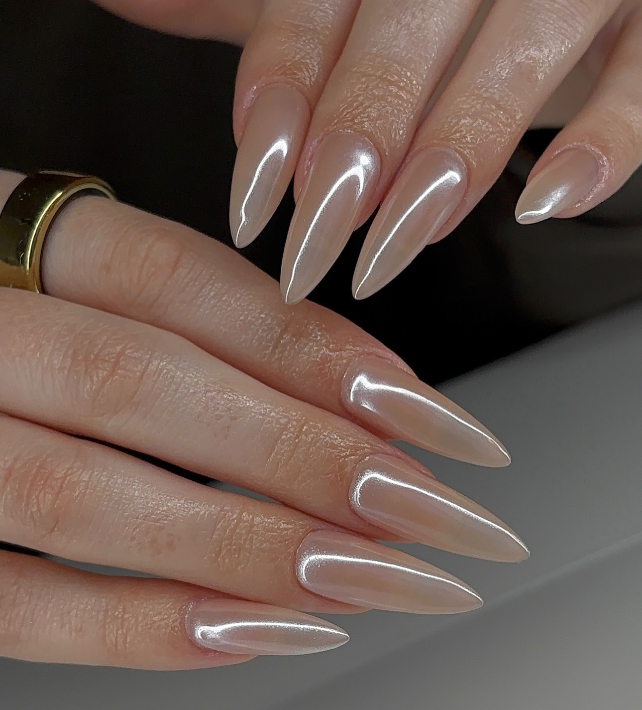 Suptilan sjaj koji podsjeća na bisere daje ovoj nijansi mekoću i dubinu bez upadljivosti. Umjesto klasičnog sjajnog finiša, ovdje se dobija diskretna refleksija svjetla koja nokte čini urednim i njegovanim, ali ne napadnim.