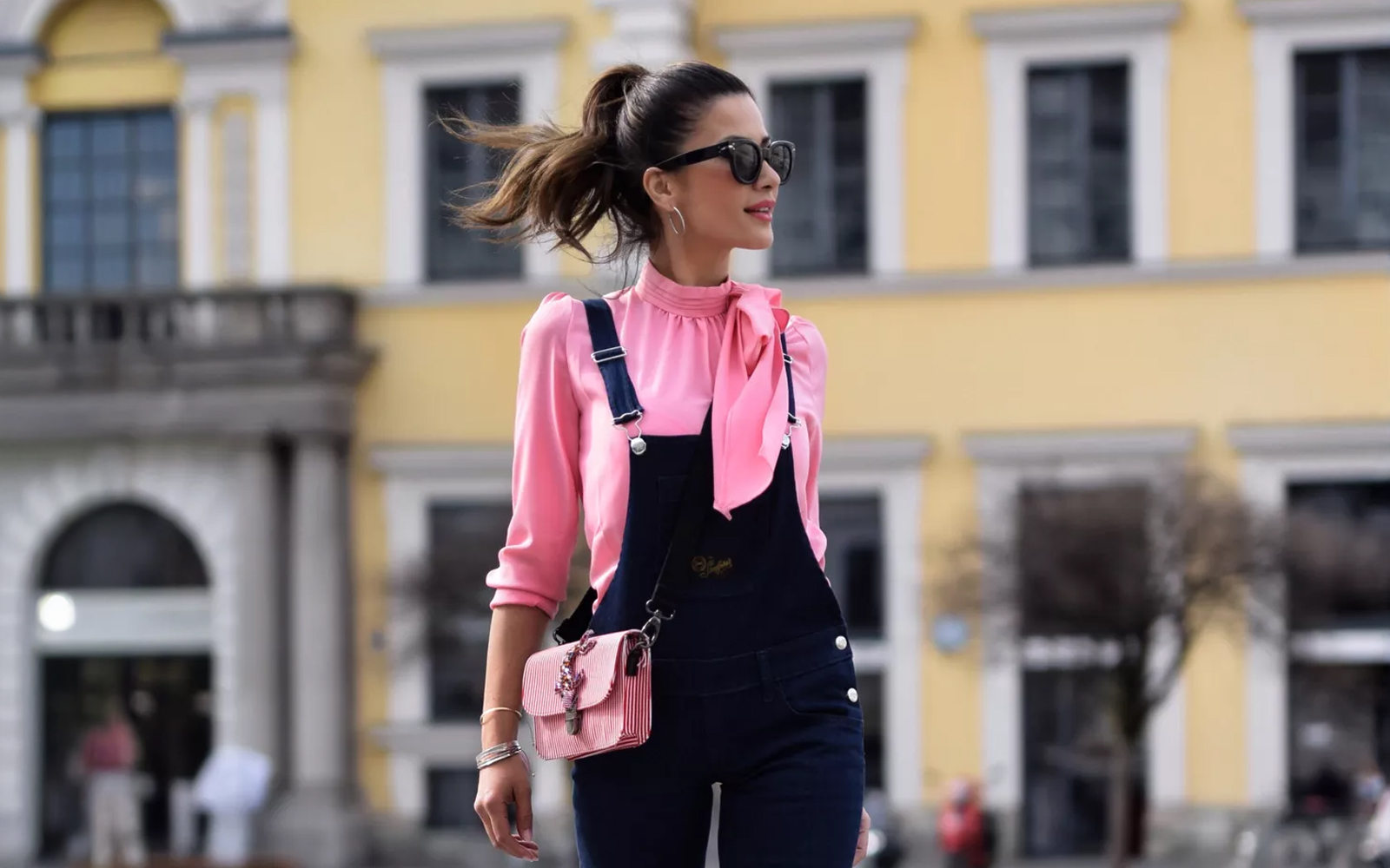 Ova očaravajuća modna kombinacija savršen je izraz urbane sofisticiranosti uz prizvuk neobuzdane mladalačke energije. U centru pažnje je prekrasna ružičasta bluza sa zanimljivom mašnom oko vrata koja dodaje dašak elegancije i ženstvenosti. Njen intenzivni ton izvanredno balansira teget tregerice čime se stvara harmonija boja koja ističe samopouzdanje i odvažnost.