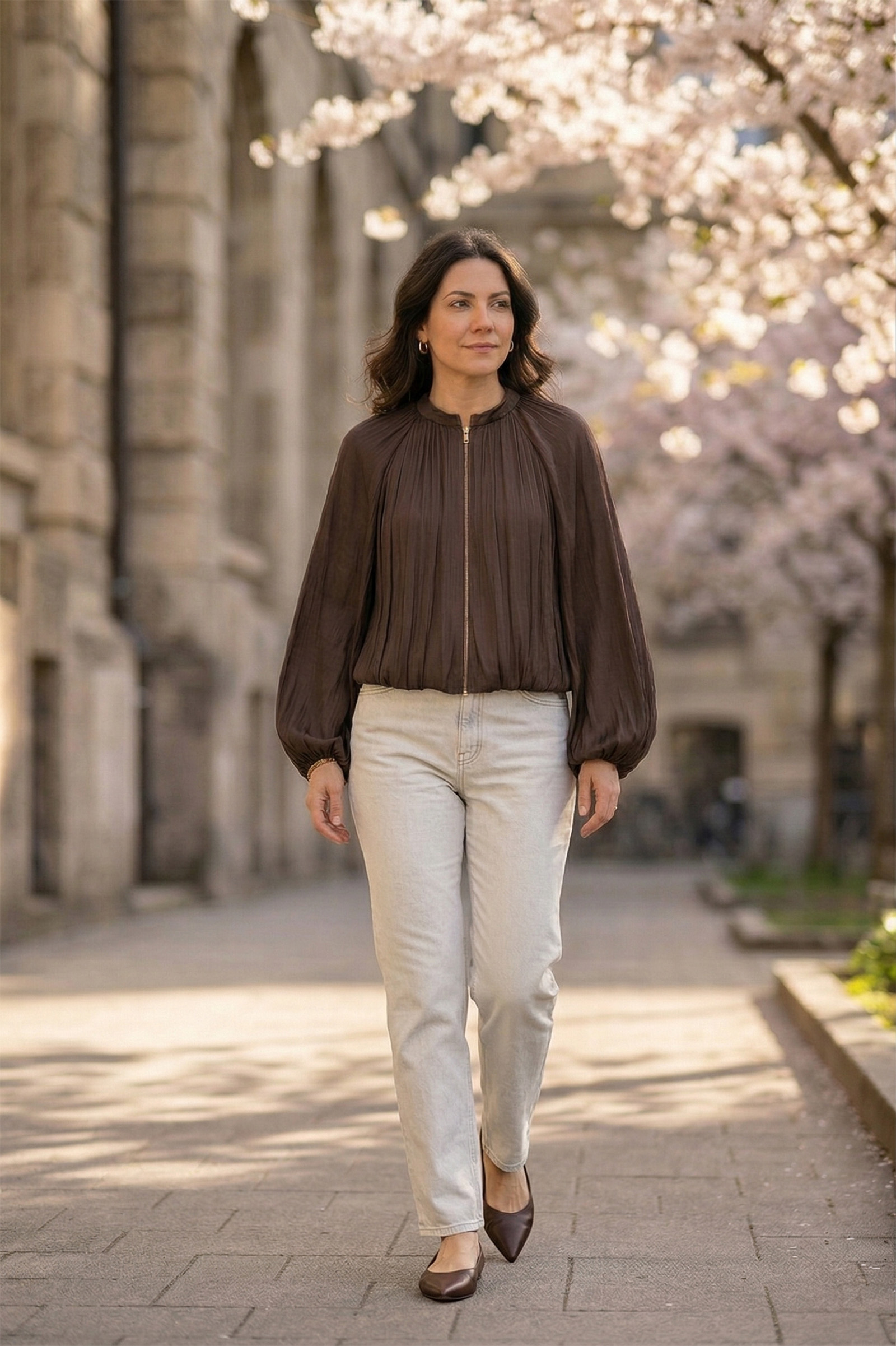 Jakna sa balon rukavima u boji čokolade