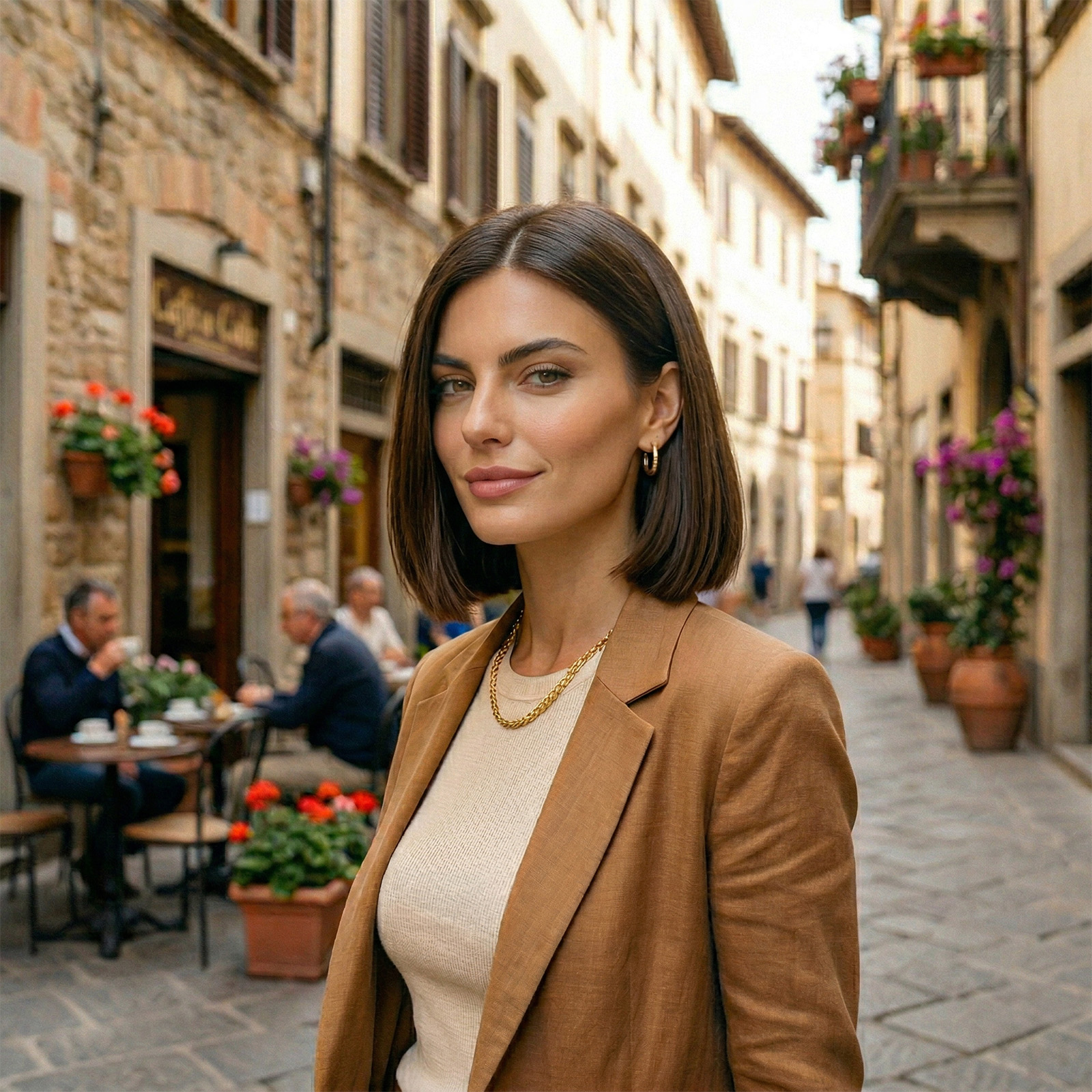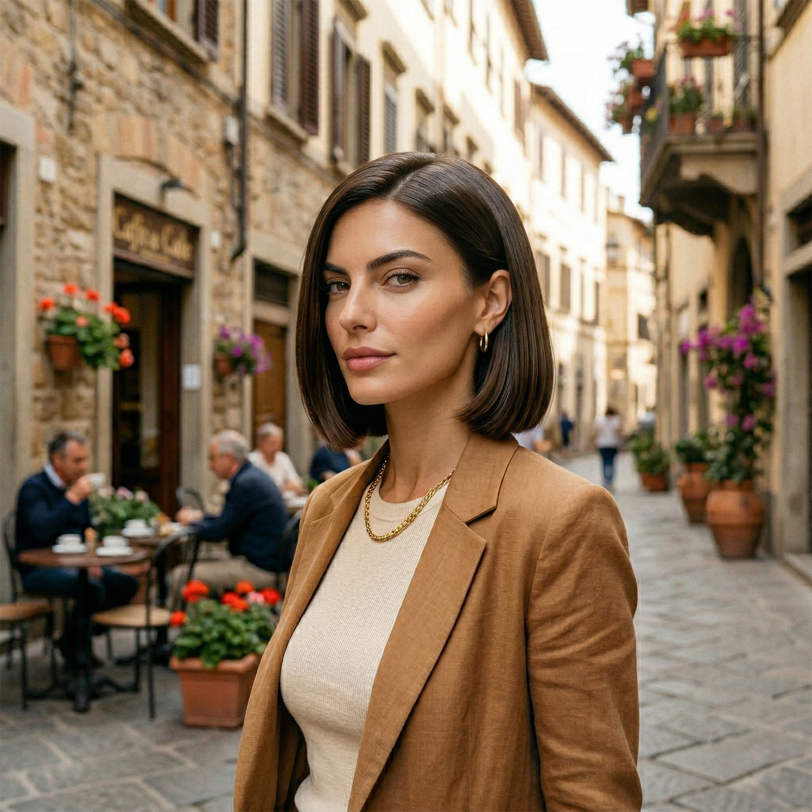 Dok se mnogi stilovi oslanjaju na stepenasto šišanje i razbarušenost, italijanski paž bira put čiste linije i kompaktnosti. On ne djeluje nemarno, ali ni uštogljeno. To je frizura koja šalje poruku o svjesnom izboru i prefinjenom ukusu, a ne o slučajnoj promjeni.