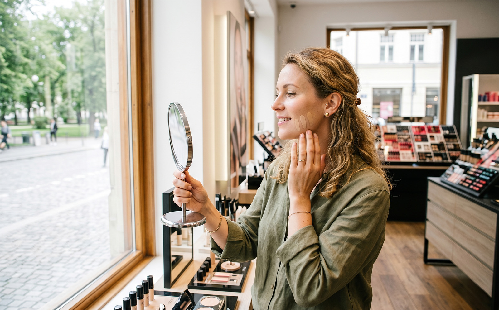 Najveća greška koju možete da napravite jeste da ocjenjujete boju pudera pod vještačkim svjetlom u prodavnici. Neonska svjetla potpuno mijenjaju izgled nijanse! Ako isprobavate puder u radnji, obavezno priđite prozoru ili izađite napolje. Pogledajte lice iz više uglova na prirodnoj dnevnoj svjetlosti kako biste bile apsolutno sigurne da ste napravile nepogrešiv izbor.