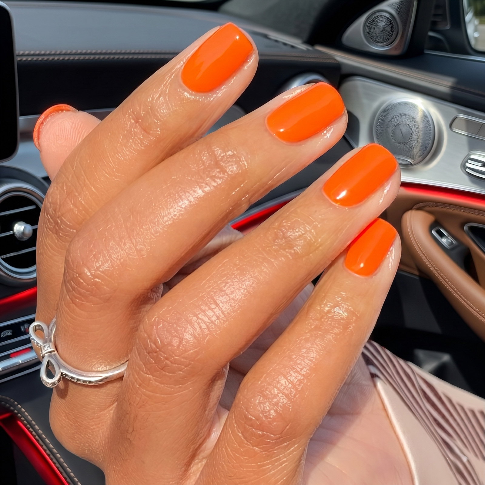 Bilo koja snažna i upečatljiva boja uvijek izgleda odlično na kratkim noktima. Za nadahnuće može poslužiti raskošno cvijeće, svježe voće ili odjevni komadi, jer sa jarkim tonovima zaista ne možete pogriješiti. Jarka boja mandarine izdvaja se kao jedan od najljepših izbora.