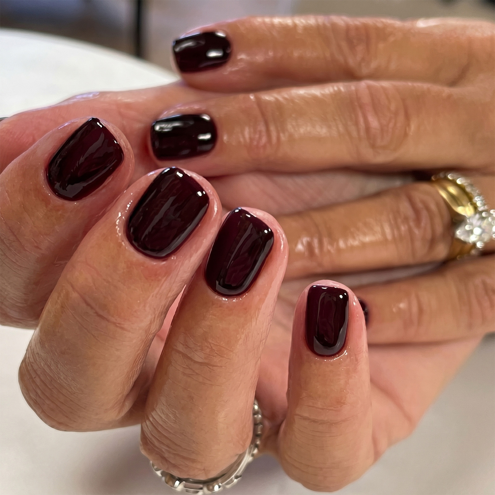 Na kraćim noktima, duboka tamnocrvena boja djeluje izuzetno snažno i elegantno. Zbog manje površine, boja izgleda gušće, njena ljepota dolazi do punog izražaja i savršeno uokviruje i naglašava sam oblik nokta.